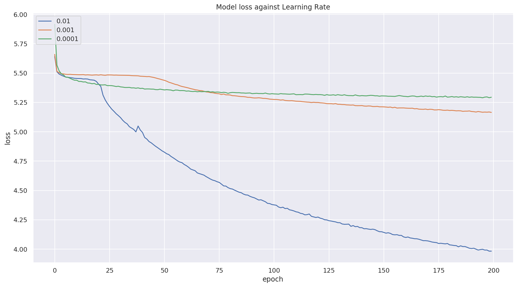 learning ratesof 0.01, 0.001 and 0.0001. - We run 200